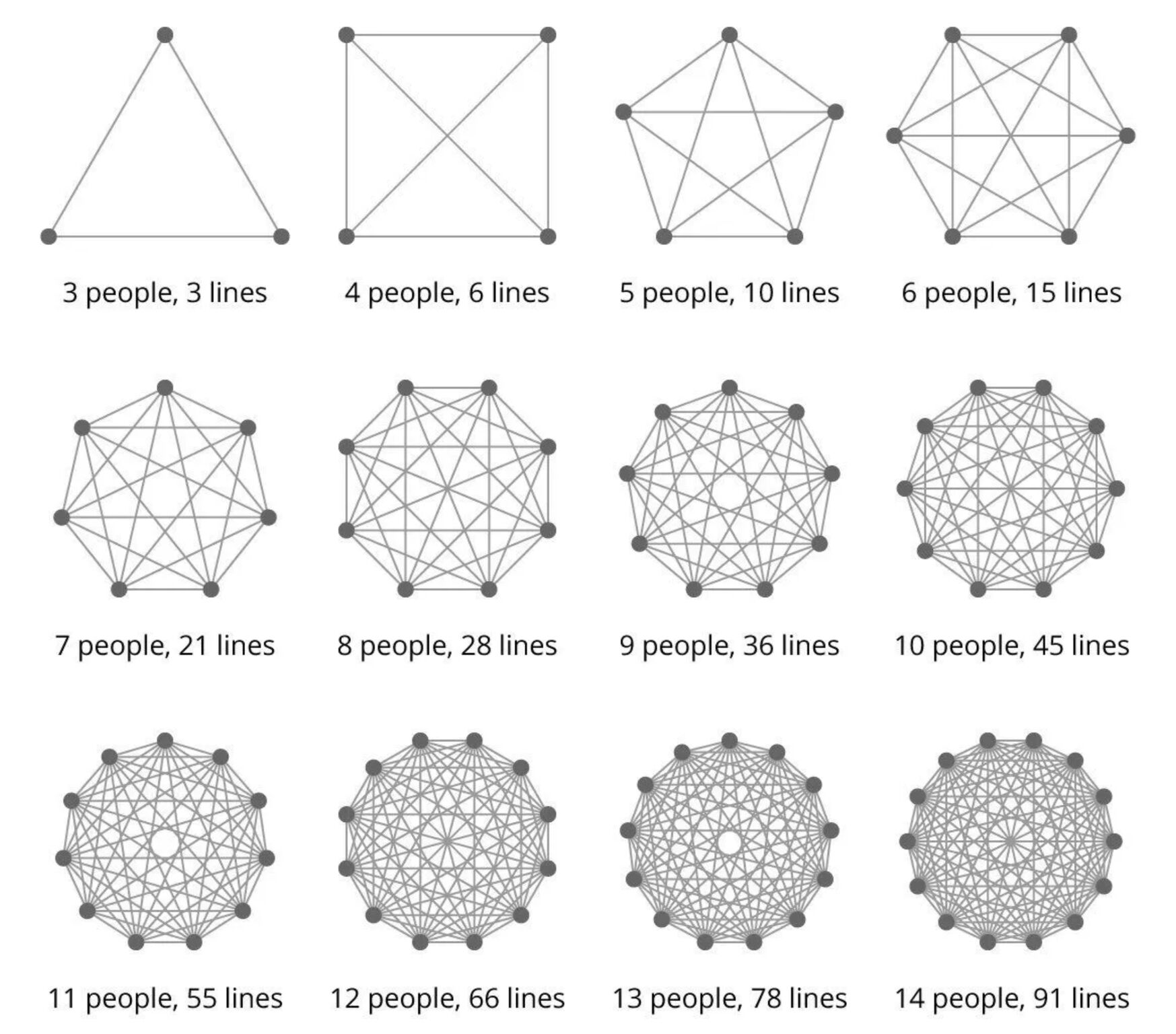 20 engineers → 190 connections